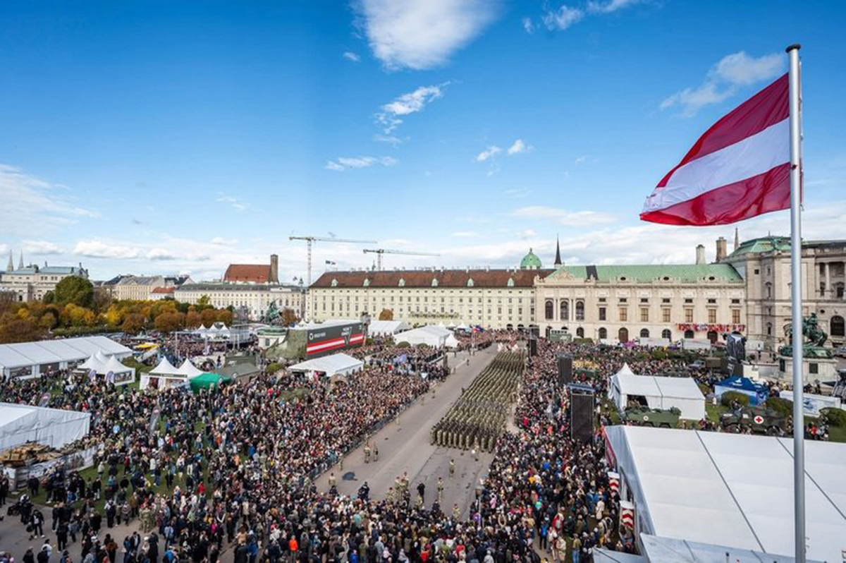 Wie auch in den Jahren zuvor präsentierte sich die Landesgeschäftsstelle Wien im Rahmen der Leistungsshow des Bundeheeres am Heldenplatz. In diesem besonderen Jahr- das ÖBH feierte seinen 70 Geburtstag – war es eine eindrucksvolle Show, die geboten wurde. Zum Höhepunkt der Veranstaltung, der Angelobung von Rekrutinnen und Rekruten, erfolgte ein beeindruckender Vorbeimarsch in der Luft sowie am Boden. Trotz der beengten Verhältnisse konnte den Besuchern ein Querschnitt durch alle Waffengattungen geboten werden: Besonders beeindruckend war der Überflug der Luftstreitkräfte, die neben 4 Eurofightern unter anderem den neuen Hubschrauber, den AW 169, und den neuen Jettrainer M 346 präsentierten.