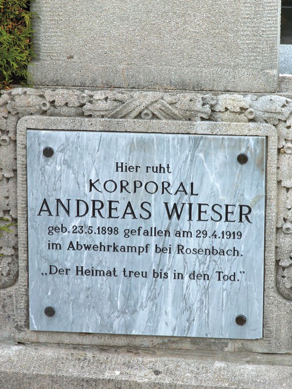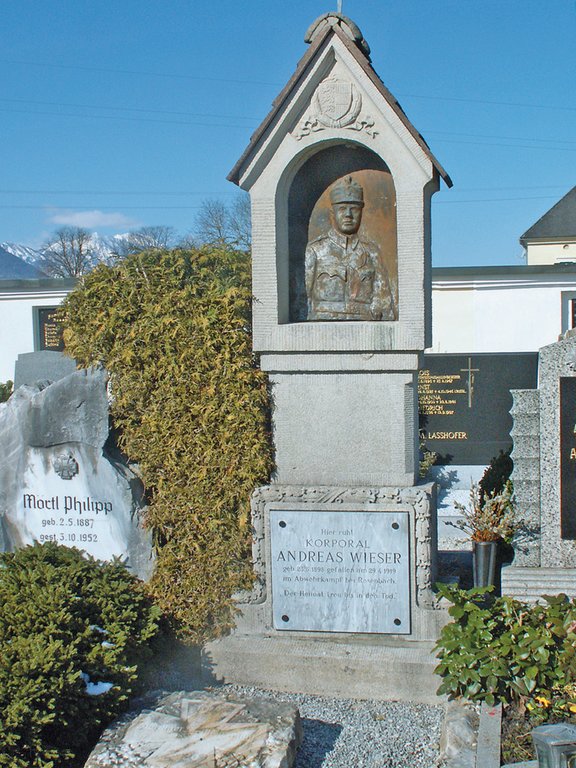 Einzelgrab des Abwehrkämpfers Korporal Andreas Wieser