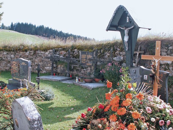 Das Partisanengrab mit 4 Toten aus dem Jahre 1945 liegt im Ortsfriedhof.