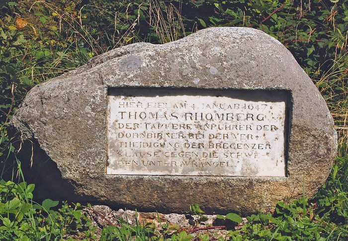 „Rhombergstein“ – hier ruhen die im Jahre 1647 gefallenen Dornbirner samt ihrem Hauptmann Rhomberg.