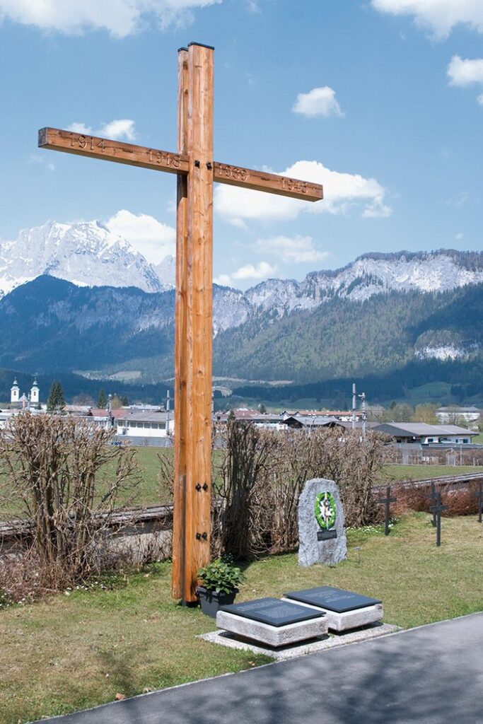 Soldatengräber und Hochkreuz in der Friedhofsanlage