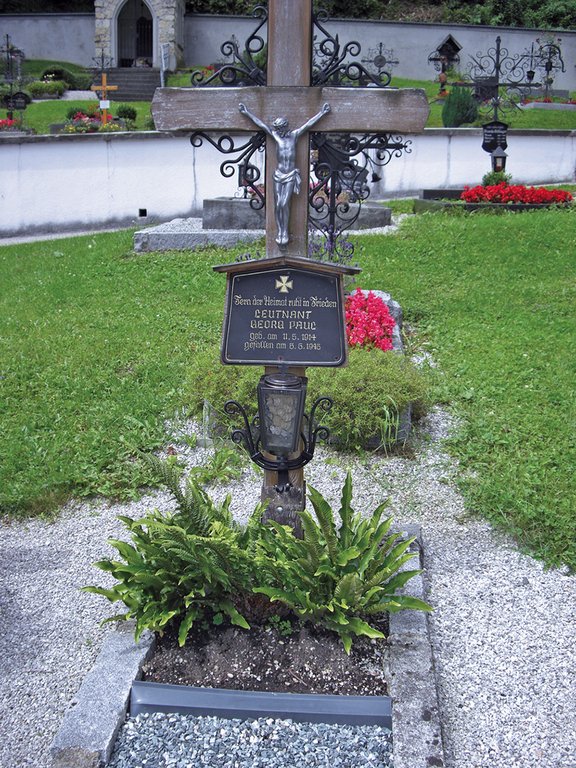 Die letzte Ruhestätte von Leutnant Georg Paul, gestorben am 5. Mai 1945, befindet sich am Ortsfriedhof …