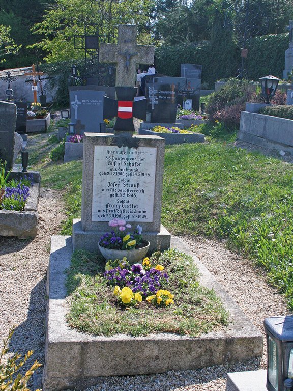 Drei Gefallene des Zweiten Weltkrieges ruhen gemeinsam in einem Kameradengrab am Ortsfriedhof in Oberneukirchen.