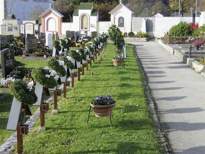 Parzelle für 34 Opfer des Zweiten Weltkrieges auf dem Ortsfriedhof