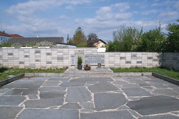 Im Ortsfriedhof Pregarten fanden in zwei Ehrenteilen 124 gefallene deutsche und russische Soldaten aus den harten Kämpfen Anfang Mai 1945 an der Feldaist die letzte Ruhe.