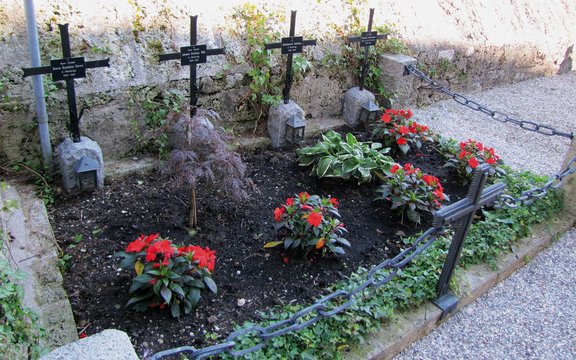 13 Kriegstote des Zweiten Weltkrieges ruhen in einem Gemeinschaftsgrab am Ortsfriedhof der Gemeinde Überackern.