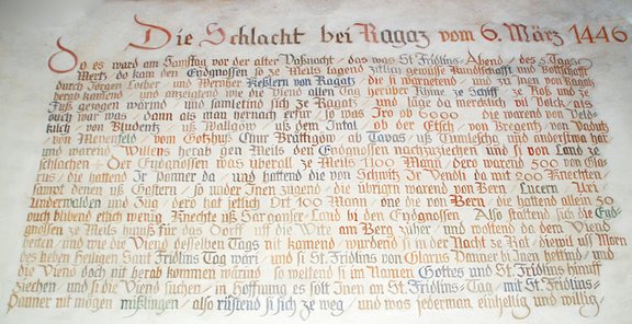 Massengrab – bei der St. Leonhardkapelle wurden die am 6. März 1446 gefallenen Feldkircher, Jagdberger, Bludenzer, Bregenzer, Bregenzerwälder, Inntaler, Leute ob der Etsch, Vaduzer, Maienfelder, Churer, Prättigauer und Davoser bestattet.