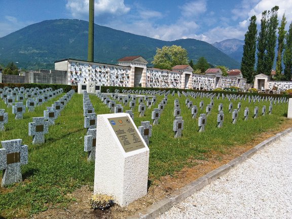 4.201 Gefallene der k.u.k. Armee, vor allem aus den Kämpfen um den Mt. Grappa, haben hier ihre letzte Ruhestätte gefunden. Für je sechs Tote wurde ein Marmorkreuz gesetzt.