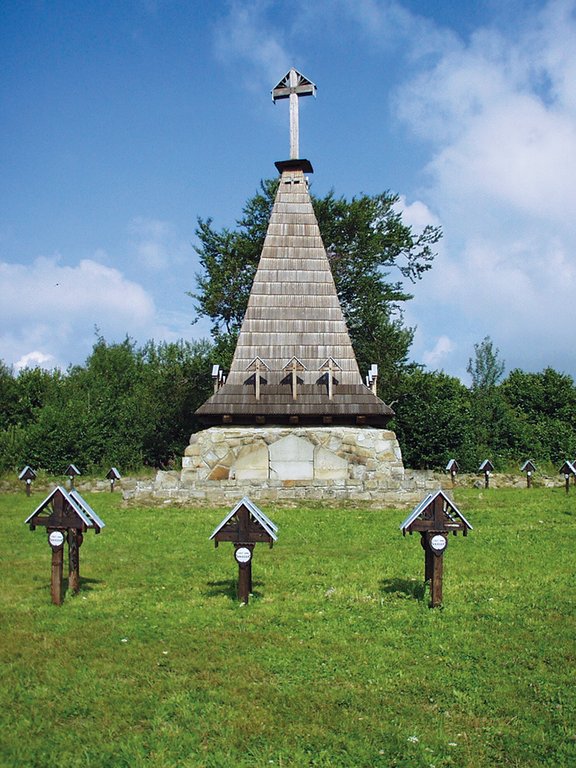Auf diesem Friedhof an der polnisch-slowakischen Grenze ruhen bei Kämpfen im Jahr 1914 Gefallene der k.u.k. Armee und der russischen Armee in 53 Einzelgräbern und 31 großen Massengräbern.